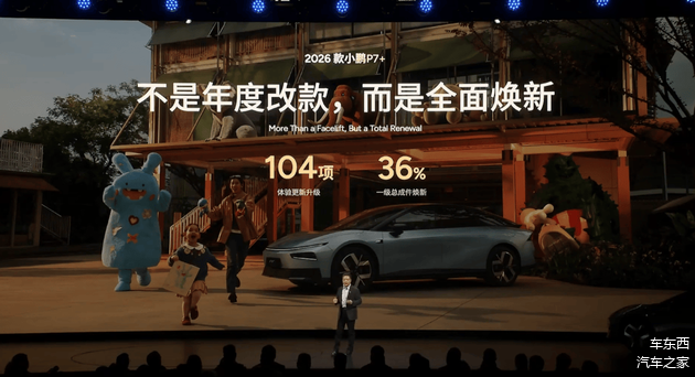 其中,作为小鹏面向全球的一车双能车型,2026款小鹏P7+全面焕新,全车体验升级点达到104项,一级总成件焕新36%。