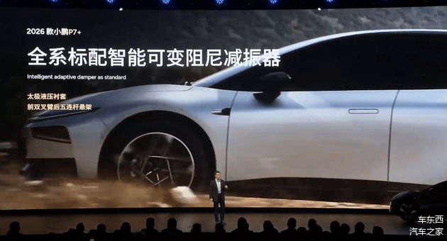 底盘方面,2026款小鹏P7+全系标配智能可变阻尼减振器,全系标配太极AI底盘,升级6D防晕车智能算法,颠簸道路时的舒适性进一步提升。