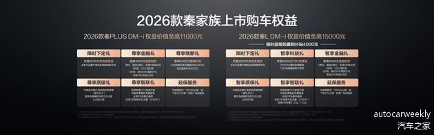另外,2026款秦PLUS DM-i 210KM长续航版为用户带来至高11000元的多重权益,进一步降低年轻家庭购车门槛!在1月31日前下单,不仅有至高4000元置换补贴,还免费送价值3000元的全新车色,更有至高4000元金融贴息,是追求品质实惠家庭的优质之选。