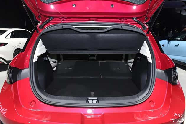 侧面来看,新车前低后高,且腰线贯穿门把手呈现上扬的设计,让新车有一种俯冲运动感,类似于海洋生物跃入水中的姿态。门把手是半隐藏设计,这一点好评,后柱熏黑设计,营造出悬浮式车顶的视觉效果,底部是五辐式轮毂,造型也运动。尾部造型圆润,和前脸呼应,上面有着小尾翼和鲨鱼鳍设计,略显俏皮,灯组也是贯穿造型,中间留白较多,但底部的设计风格和前脸一样,突出一个拟物化。
