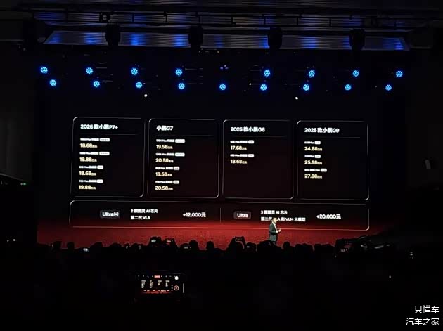 2026年1月8日,小鹏汽车开年四车连发,首先是作为全球车型的2026款P7+和2026款G6以及2026款小鹏P9正式上市,其中,小鹏P7+也将于1月9日在比利时布鲁塞尔欧洲正式上市,本次上市的2026款小鹏P7+共4款车型,售价18.68-19.88万元,2026款 小鹏G6共2款,售价17.68-18.68万元,2026款小鹏G9共3款,售价24.88-27.88万元。2026款G7共4款车型,售价19.58-20.58万元。最重要的是将2025年搭载在小鹏X9上的超级增程技术释放给了本次上市的两款车型,自此,2026款小鹏P7+和2026款小鹏G7均有增程版车型。其次是2026款的小鹏G6和G9,在这两款车型上,换芯出发。以上所有4款车型均可选配搭载2250TOPS算力的共三颗图灵AI芯片。