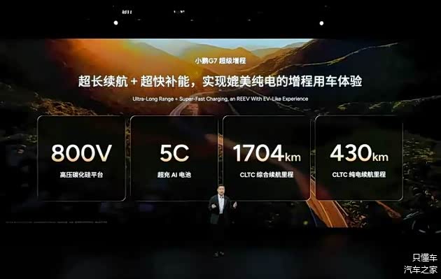 在2026款小鹏G7增程版上,采用55.8度电池与60L油箱,这样的大油箱和大电池,让2026款小鹏G7成为全球最长CLTC综合续航最长的SUV车型,CLTC综合续航可达1704km,同时CLTC纯电续航里程达430km。小鹏G7增程版采用全域800V高压碳化硅平台+5C超充AI电池,充电从10-80% SOC仅需12min,12min最快补能314 km。在能耗上百公里电耗14 kWh,百公里馈电油耗仅为5.9L。