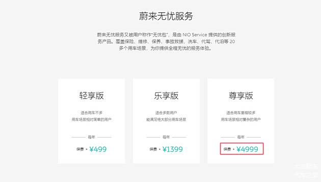 这时候,如果你不确定这个花销,其实还有一个办法,那便是选择买一下蔚来无忧服务,也就是无忧包,一年保费是4999元,考虑到后期有个返现800元,大概也就是4199元左右,这还少最贵的,最便宜的版本是499元,这个可以帮你降低一下用车成本我个人首先推荐你选择中间那个档位的,选择了这个,最起码能够降低你的用车麻烦和费用开支。