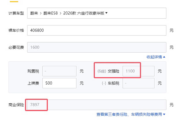 先说保险费,这个是最好算的,六座和七座的交强险是1100元,不出险第二年降到990元,当然,我们算的是第一年,而商业险全险是7897元,这里,如果你想便宜点,最好选择六座的,因为七座的车损险会贵一点,不过,也只是贵了一点点,影响也不是很大,主要还是取决于车主自己是怎么选择的。