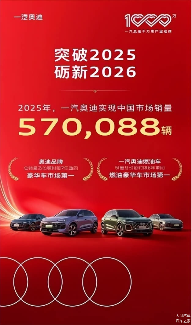 2026年元旦刚过,奥迪就宣布自己是“豪华品牌销量第一”,全年销售61万辆。但这个“第一”细看之下颇有玄机——一汽奥迪57万辆加上上汽奥迪4万辆,才凑出了这个数字。