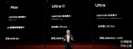 本次发布会,小鹏在智能驾驶部分推出了三个版本:Max、Ultra SE和Ultra。Max版只具有基础的L2辅助驾驶能力,1颗图灵芯片;Ultra SE版才开始支持第二代VLA,有2颗图灵芯片;Ultra版最强,3颗图灵芯片。