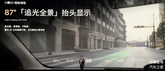 G7增程版同样具备主动降噪能力,外观也采用一体式贯穿灯带,抬头显示是87吋追光全景式3D式,不用低头看导航。