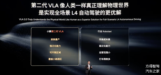 发布会上,何小鹏也着重介绍了第二代VLA的能力,可以想人类一样真正理解物理世界,具有更强的泛化与不限区域的能力。何小鹏认为能够VLA2.0与特斯拉FSD V14.2版本一较高下。