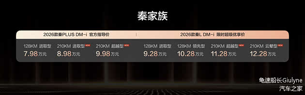 2026款秦L DM-i与2026款秦PLUS DM-i 210KM长续航版,凭借超长续航打破出行边界,以豪华科技配置重塑家轿体验,精准满足不同家庭需求。作为插混轿车的引领者,秦家族以硬核产品力和越级价值,必将成为2026年行业风向标,引领家轿市场迈向高品质发展新阶段。