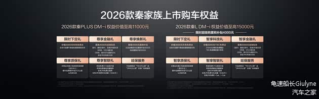 值得一提的是,2026款秦L DM-i 210KM长续航版为追求品质的家庭带来进阶之选,推出价值至高15000元的多重权益。在1月31日前下单,可以享受限时超级购置税补贴4000元;购买210KM云辇型,还可以免费获赠TBC高速爆胎稳行系统,让用户购车更省钱,出行更安全。