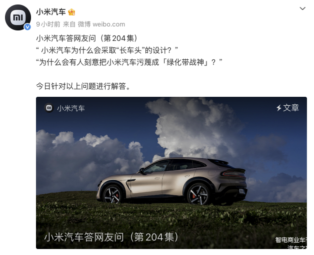 从“长车头”设计理念到碰撞安全策略,从“绿化带战神”污名化指控到技术材料争议,小米汽车此次回应覆盖多个焦点话题。
