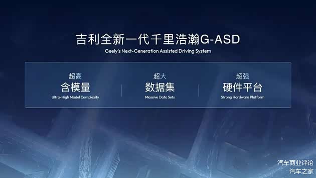 其中,“G”代表吉利,“ASD”代表千里智驾。G-ASD 是双方联合研发的高含模量智能辅助驾驶解决方案,将全面覆盖从 L2 到 L4 级别的智能驾驶能力。