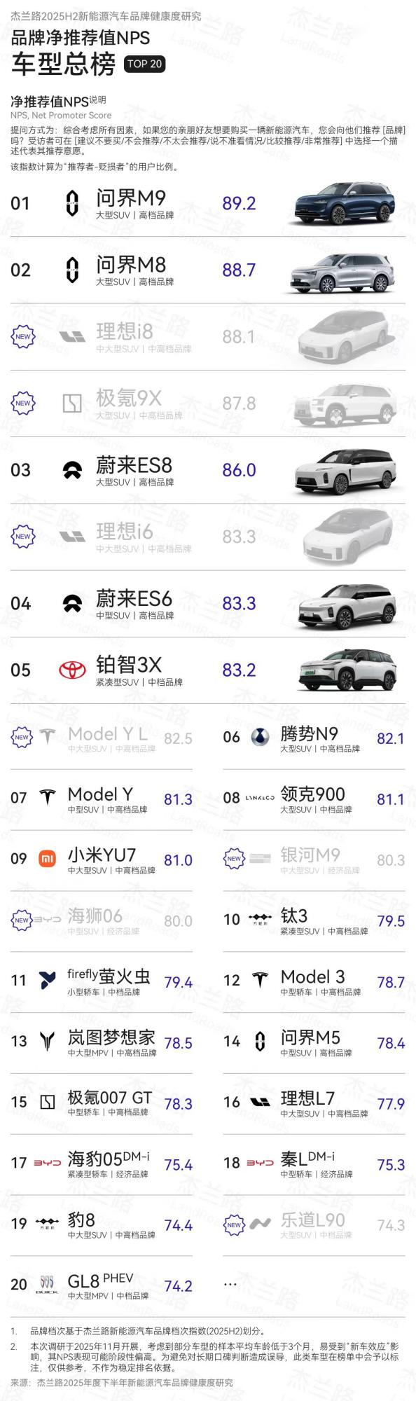 需要强调的是,问界M9和问界M8包揽NPS第一、第二的佳绩,这已经不是简单的车型成功,而是“双旗舰”战略的胜利。两款车型满足不同高端人群的需求,是中国品牌新豪华主义的标杆。