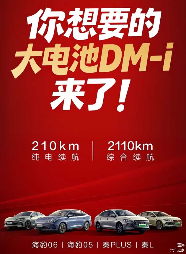 比亚迪针对秦PLUS DM-i、秦L DM-i、海豹05 DM-i以及海豹06 DM-i车型加推纯电续航210km、综合续航2110km的大电池版本。除了纯电续航的提升,上述加推车型还在配置上做了提升。比如,秦PLUS DM-i长续航版升级双层静音玻璃、后排杯架和扶手、主驾6向电动调节座椅、电动后视镜折叠等;秦L DM-i长续航版则聚焦智能化与驾控的升级,将搭载最新DiLink 6.0车机、天神之眼-C辅助驾驶系统,以及云辇-C底盘。