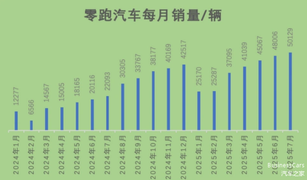 2025年7月份,零跑交付新车50,129辆,同比增长126%,首次单月交付超过5万辆。7月24日上市的 零跑B01,7天便实现1万辆的新车量产下线。