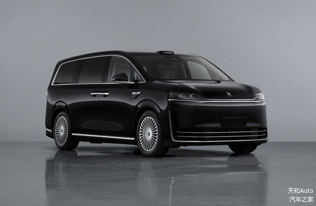 车身尺寸为5359*2009*1859毫米,轴距为3250毫米,采用七座布局;车轮规格为255/55 R19,HL/55 R20;接近角、离去角均为15度,最高车速190km/h。车辆外观设计采用鸿蒙智行品牌设计语言,前照灯尺寸较大,采用装饰条连通,尾灯为贯通式,车身线条简单规整,作为“商务车”属于中庸的风格。