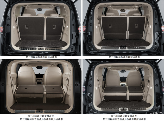 车辆第二、三排座椅均可以折叠,第二排座椅支持电动旋转。