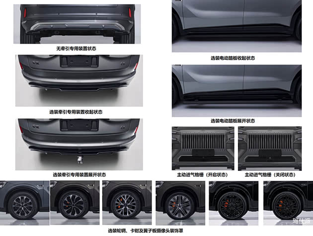 动力方面,全系为插混总成,搭载2.0T的发动机,输出功率205kW,预计和极氪9X一样采用双电机和三电机配置,只是会提供后轮转向系统。