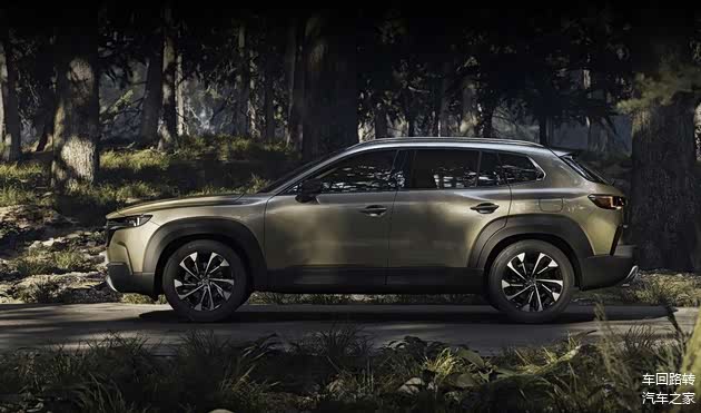 车身侧面,新车的身形简洁流畅,颇具运动感,新增双色旋风轮毂,带来更低的风阻系数,也提升了美感与燃油经济性。此外,新款CX-50行也新增了锆石砂配色,使得外观沉稳大气又不失细腻质感,满足了消费者对个性化与高品质的审美需求。