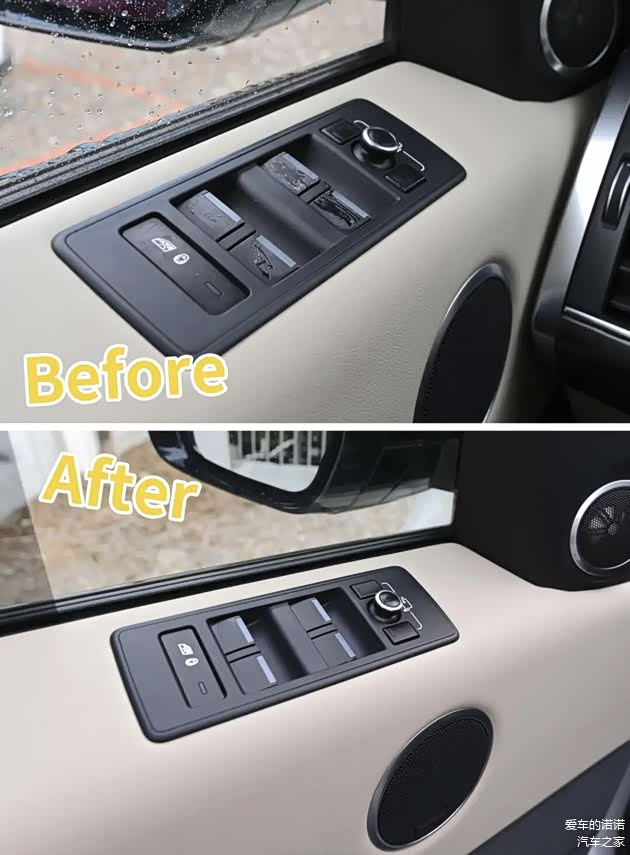 在当时出于环保考虑,路虎乐意在车内的各个按键上,使用亲肤清漆高分子涂料,它会随着时间逐步老化发黏。