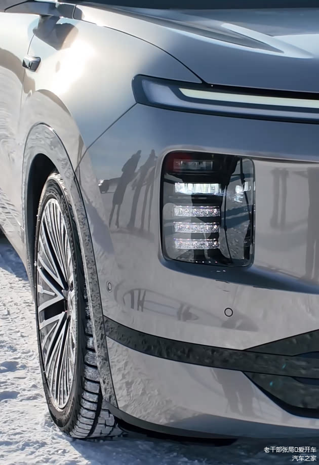 设计细节上,采用贯穿式日间行车灯,且两侧有交错式设计,这一设计样式同时出现与尾灯两侧。前大灯主光源则位于下保险杠两侧,除申报图申报的“五条杠”外,大灯的实拍样式也在ID. ERA 9X的冬测有关视频总曝光,细节更为精致。