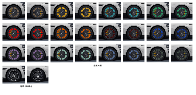 可以见到,某个轮辋中的点缀颜色拥有相当丰富的可选项。看来,未来全新小米 SU7 上市后,如何搭配个性化元素,会是难倒用户的一个难题。