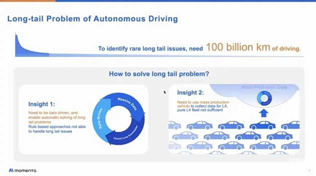 老马的言外之意相当明显,自动驾驶已经发展了二十年,只要完成了向端到端范式的成功切换并建立起来高效的开发闭环,应对常规场景可谓手拿把攥,那些无穷无尽、罕见复杂的长尾场景才是自动驾驶迈向L4的最大障碍和真正挑战。