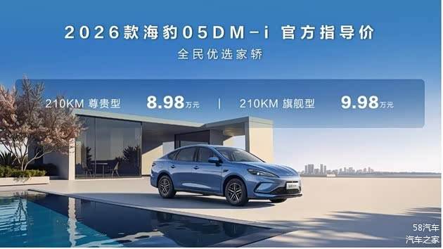 1月9日,比亚迪海洋网宣布为2026款海豹05 DM-i与海豹06 DM-i超享版新增纯电续航210km的车型。其中,海豹05 DM-i推出210km尊贵型与旗舰型,售价8.98万至9.98万元;海豹06 DM-i超享版则推出210km尊享型与旗舰型,售价11.68万至12.68万元。