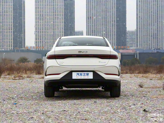 车尾部分,新款比亚迪秦PLUS DM-i配备了动感的小鸭尾造型,尾灯组采用时下流行的贯穿式设计,内部还进行了熏黑处理,点亮后也带来不错的视觉效果。此外,新车还配备了非常个性的后包围,两侧集成有扁平的雾灯,凸显出一定的立体感。