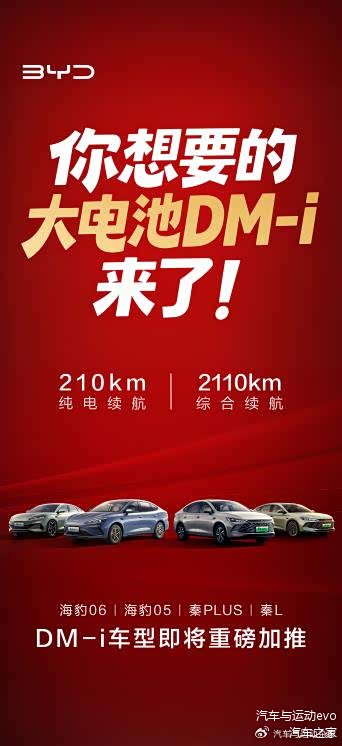 2026年1月7日,比亚迪宣布为秦PLUS DM-i、秦L DM-i、海豹05 DM-i及海豹06 DM-i这4款热销车型加推长续航版,其CLTC纯电续航均突破210km,相比同级混动车型的纯电续航翻一倍,真正实现“一周一充”的纯电通勤体验。超2110km的综合续航,再配上只需20分钟就能从30%充到80%的充电速度,比亚迪大电池插混车型全面覆盖日常通勤与长途出行全场景,消除里程焦虑。