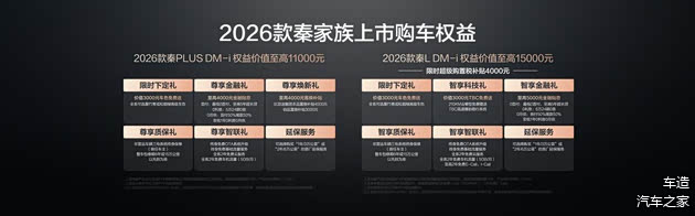 值得一提的是,2026款秦L DM-i 210KM长续航版为追求品质的家庭带来进阶之选,推出价值至高15000元的多重权益。在1月31日前下单,可以享受限时超级购置税补贴4000元;购买210KM云辇型,还可以免费获赠TBC高速爆胎稳行系统,让用户购车更省钱,出行更安全。