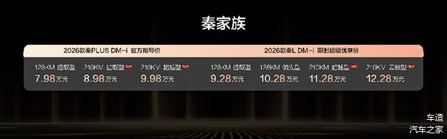 2026款秦L DM-i与2026款秦PLUS DM-i 210KM长续航版,凭借超长续航打破出行边界,以豪华科技配置重塑家轿体验,精准满足不同家庭需求。作为插混轿车的引领者,秦家族以硬核产品力和越级价值,必将成为2026年行业风向标,引领家轿市场迈向高品质发展新阶段。