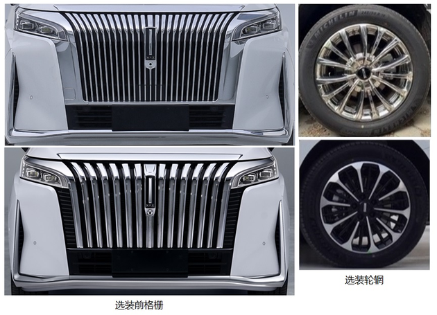 魏牌高山7在售款采用了细密的直瀑式进气格栅,并且两侧有粗壮的镀铬条,与前照灯连为一体;申报版本则取消了两侧和底部的镀铬条,直瀑式格栅辐条也变得粗壮,数量有所减少。