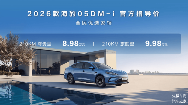 我们从比亚迪官方获悉,1月9日,比亚迪海洋网正式宣布,为旗下两款主力插混家轿——2026款海豹05DM-i与海豹06DM-i超享版,分别新增两款纯电续航达到210km的全新车型。其中,2026款海豹05DM-i新增210KM尊贵型与210KM旗舰型,官方指导价区间为8.98万—9.98万元;海豹06DM-i超享版新增210KM尊享型与210KM旗舰型,售价区间为11.68万—12.68万元。同步推出的还有包括金融支持、置换补贴、车机流量及整车与三电质保在内的多项上市权益,进一步降低用户购车与用车门槛。