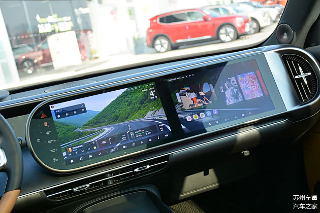 中控台上的双13英寸AMOLED屏幕支持左右分屏操作,副驾驶前方可独立进行娱乐控制。此外,新车还配备有AMD V2000桌面级高算力芯片,并集成了豆包AI大模型语音交互系统,不仅为车辆屏幕的交互娱乐带来更加流畅的使用体验,也让新车在智能辅助驾驶方面更加出色。