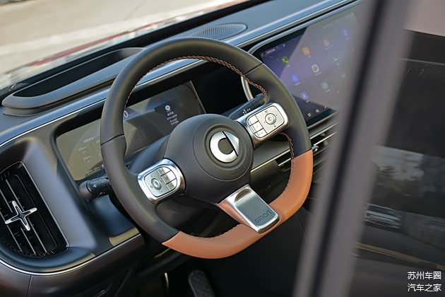 同外观一样,smart精灵#5 EHD的内饰同样延续了纯电版设计语言,大量的胶囊设计元素有着强烈的家族特征。不过因为混动版价格与纯电版有所差异,新车在功能配置方面有所不同,不过与同级别车型相比依旧十分丰富,包括全液晶仪表盘、大尺寸触控屏以及高算力芯片等,绝对能够满足大多数消费者的用车需求。