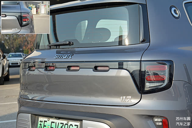 smart精灵#5 EHD的车尾部分与前脸相呼应,同样贯穿式后尾灯上装饰有胶囊元素,熏黑式的味道设计带来了更多运动感,而除了底部牌照框周围的银色护板同于与纯电版有所区别外,尾门侧的“#5 EHD”铭牌也代表了其混动的身份。