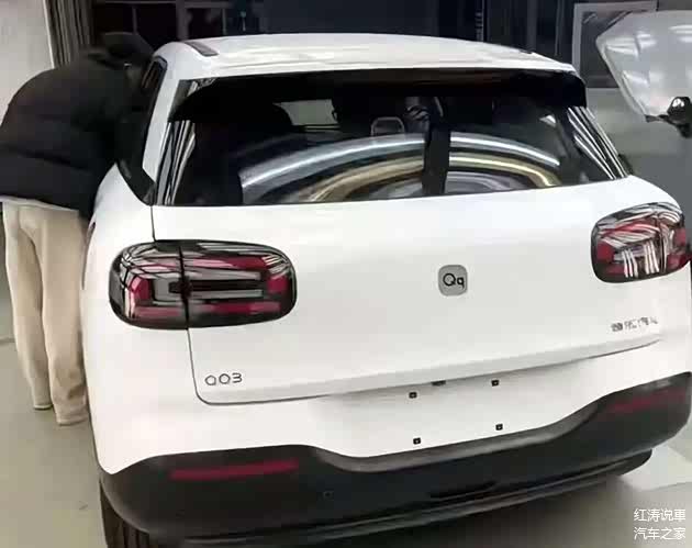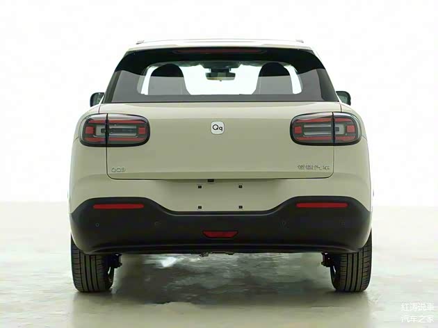 尾部是个有点小性感的肥臀,呈现出下宽上窄的造型,熏黑尾灯和前灯组的设计做到呼应,并且也换成了“Qq”车标,而黑色后包围面积较大,进一步提升整车厚重感。