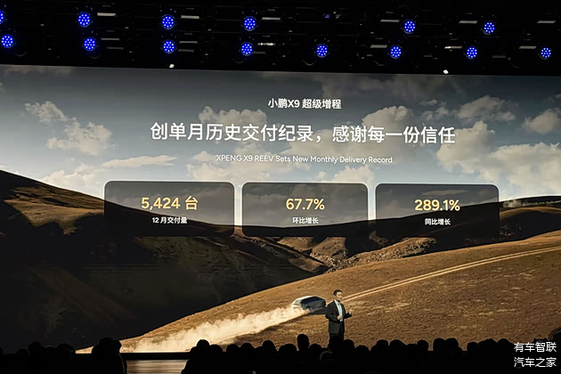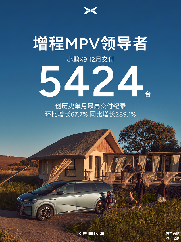 去年12月,X9超级增程迎来首个完整交付月,一举交付5424台,环比增长67%,同比激增289%。在MPV这个长期由别克GL8、丰田赛那等车型主导、且月销破5000台即属“爆款”的市场里,小鹏X9的成绩单含金量十足。