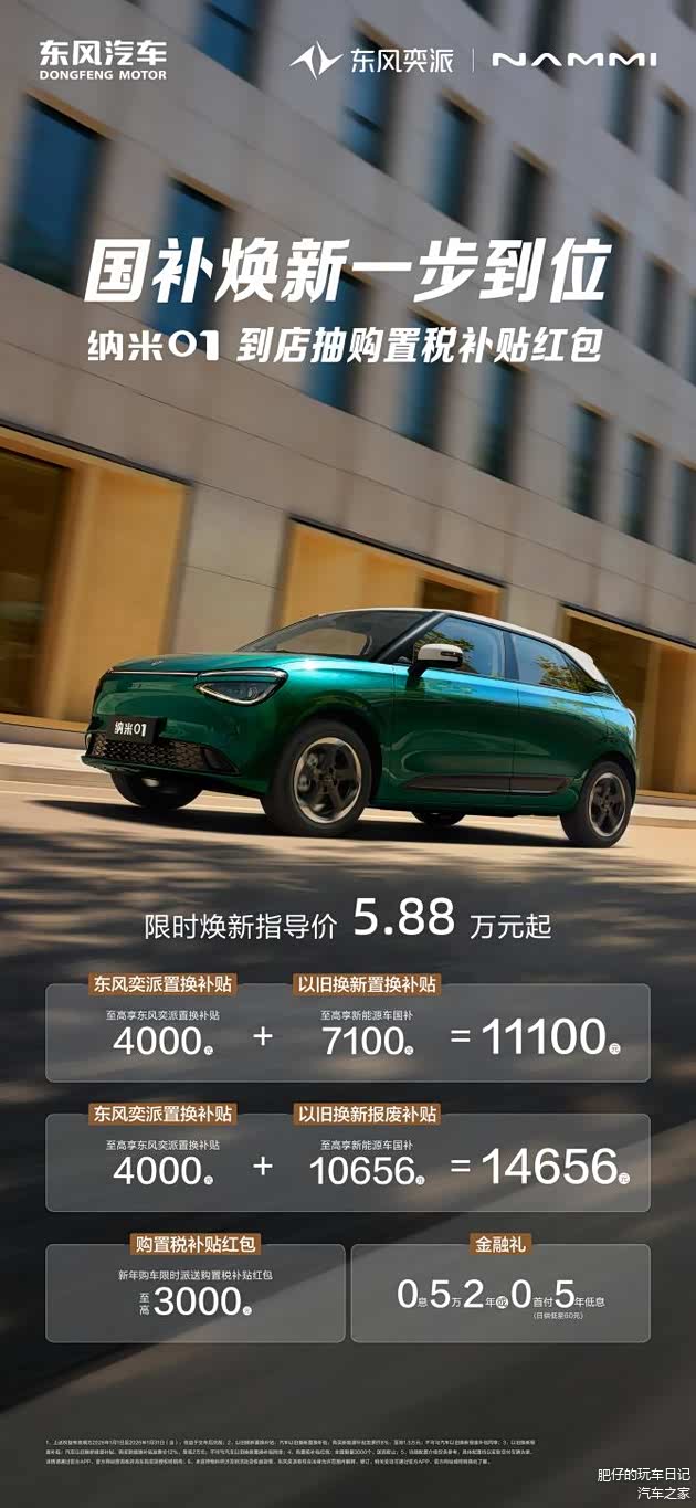 “大美智能国民车”纳米01在2025年同样持续热销,凭借极具个性的潮流气质,成为用户精致的生活搭子,累计销量已突破11万辆。为了让更多追求潮流与实用的用户享受到政策红利,2026年,纳米01限时焕新指导价5.88万元起,更有国补至高10656元+厂家补贴至高4000元+限时购置税补贴红包至高3000元,三重豪礼叠加,助力这款潮流单品持续为更多用户带来精致生活。