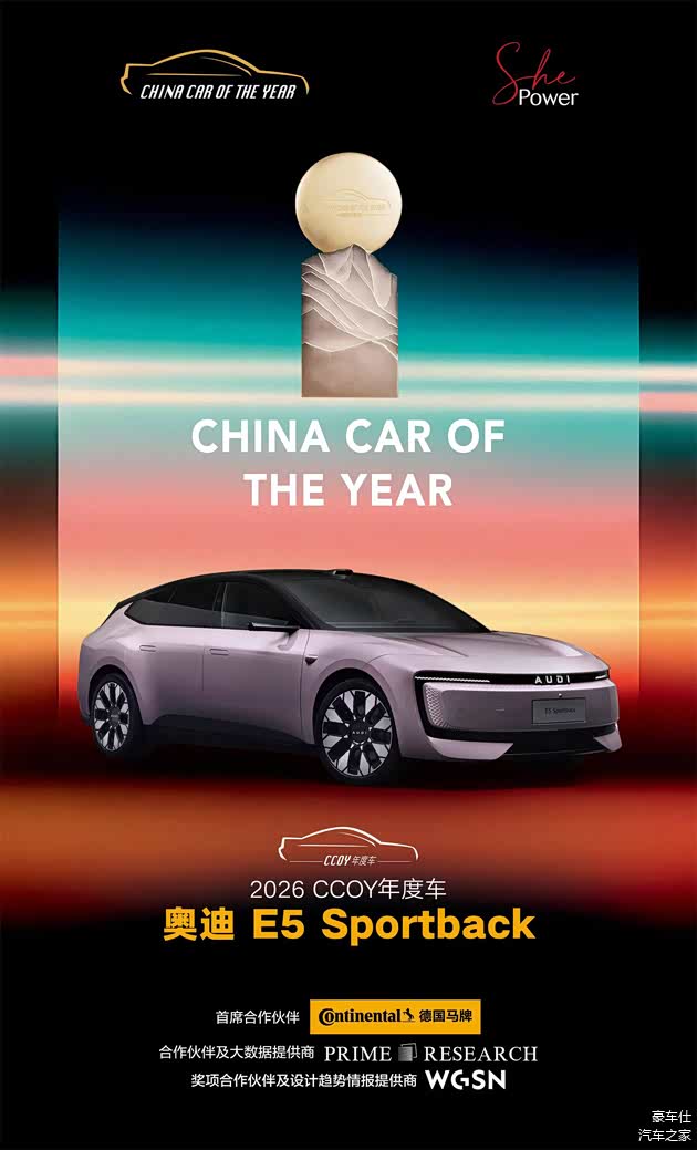 值得注意的是,奥迪 E5 Sportback也是首款在品牌发布当年即斩获CCOY年度车的新品牌车型。这一结果,不仅是对单一产品的肯定,更被业内视为新AUDI品牌战略落地的重要节点。