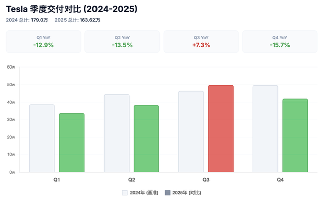 此次特斯拉推出的金融促销策略并非偶然之举。2025年,特斯拉遭遇了规模化生产以来的首次年度销量负增长。全球销量为163.6万辆,同比下滑8.6%,相当于比2024年少卖了超过14万辆。在中国市场,特斯拉零售端交付约61.8万辆,同比下降约6%。更严重的是,在欧洲市场前11个月新车注册量暴跌39%,德国、英国等核心市场份额被本土品牌大幅蚕食。而马斯克也不得不承认,目前“特斯拉正处于一个奇怪的过渡期,我们可能会有几个艰难的季度。”