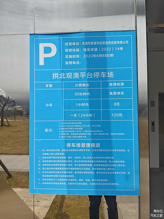 拱北观澳平台停车场:每小时 8 元,24 小时封顶 120 元
