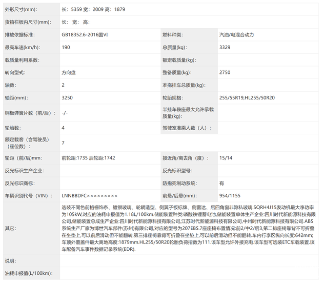 智界V9的增程系统配备53度电池和60L大油箱,CLTC综合续航里程最高可达1250+km,而按照申报信息,其WLTC纯电续航为223km,综合油耗仅为1.18L/100km。为了提升这款大型MPV的操稳和灵活性,智界V9也会装备双腔空悬和后轮转向。