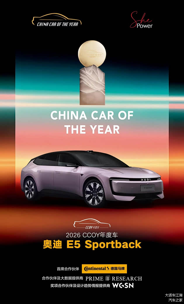2026年1月8日, 奥迪E5 Sportback在行业媒体专家评审团的评选中脱颖而出,斩获“2026 CCOY年度车”大奖,创下该奖项历史纪录——成为全新品牌首款车型发布首年即获此殊荣的车型,印证了AUDI品牌元年的成功,赢得市场与行业双重认可。