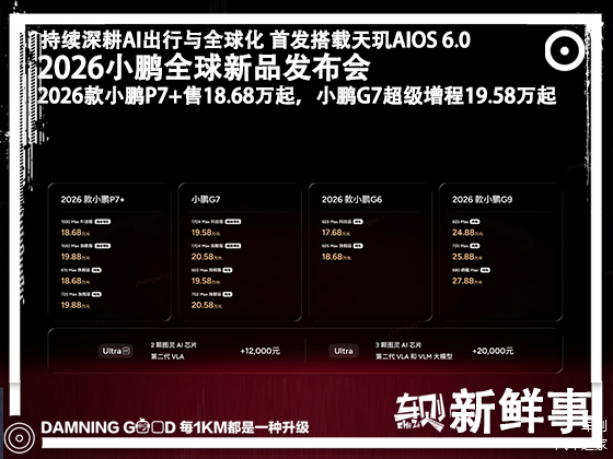 包括2026 款小鹏 P7+、小鹏 G7 超级增程、2026 款小鹏 G6、2026 款小鹏 G9。