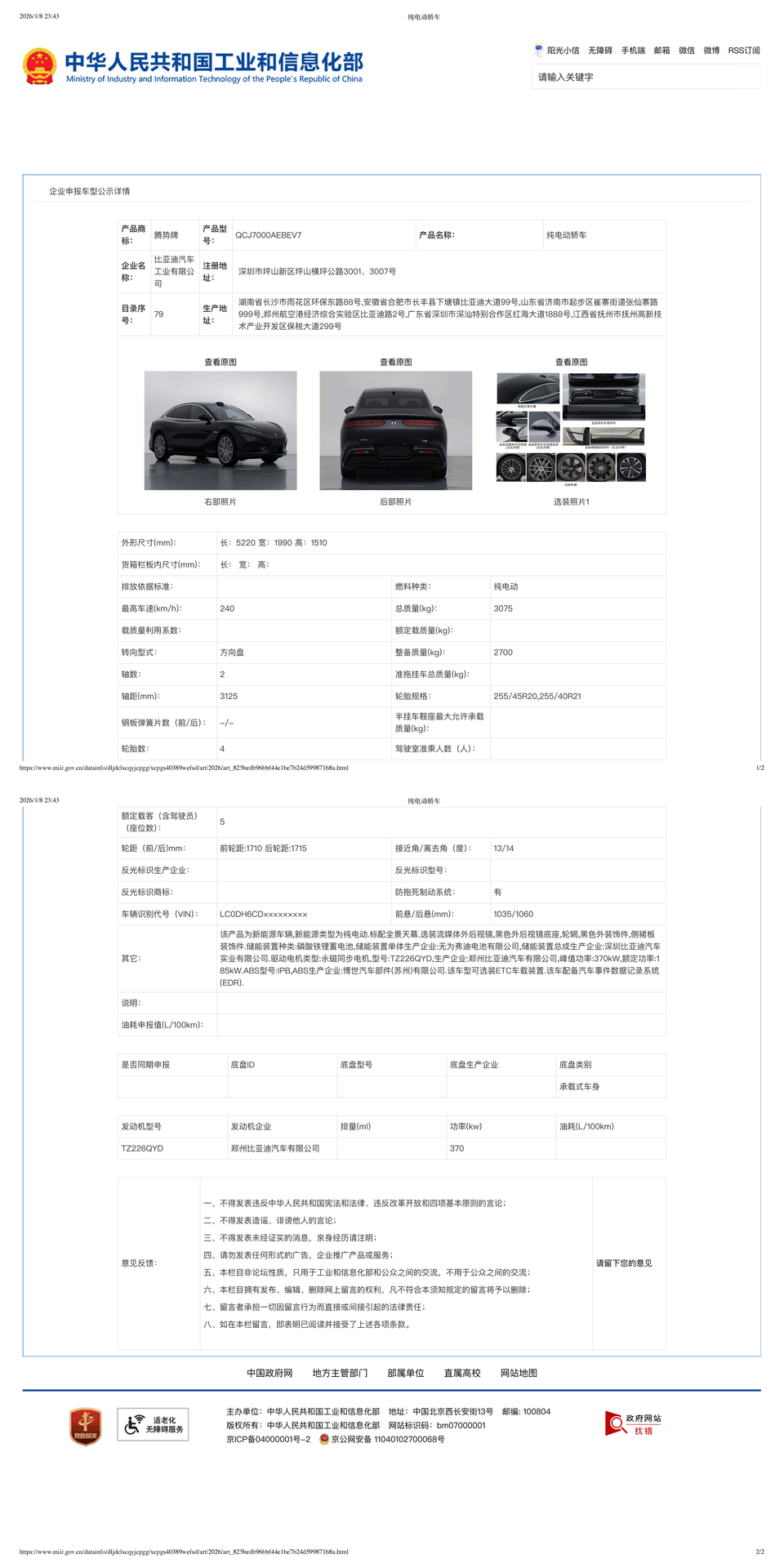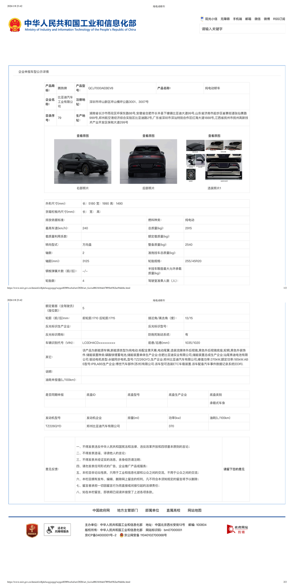 铁子们,全新腾势Z9GT公告图来啦,几个重点咱们列一下: -推出单电机版,功率为370kW,腾势也开始听用户心声了,选择更多。 -动力升级,公告的电机峰值功率为230kW/310kW/310kW,激光雷达移动到了车顶。 -三电机纯电整备质量2895kg,单电机纯电整备质量2540kg,整备质量下降,估计更好开了。 -插混版采用63.820度电池包,跟现款比接近翻倍,WLTC纯电续航301KM,CLTC纯电续航里程400+km。