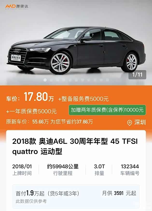 不用一台A4L的价格就能拿下“大哥”A6L,还是六缸版本?没错,澳康达二手车在售的这辆2018款 奥迪A6L 30周年年型 45 TFSI quattro 运动型就是“本尊”。其搭载了3.0T V6机械增压发动机,272马力、6.5秒加速,关键还有机械式quattro四驱系统,能显著提升复杂路况下的安全性与稳定性。