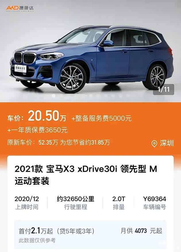 这代X3的设计经典又耐看,M运动套装上身后,运动氛围到位,内饰主打好用易用,顶配的它诸如全景影像、全速自适应巡航、HUD抬显、无线充电、哈曼卡顿音响等都配齐,2020年上牌行驶约3.2万公里而已,如今仅20万出头,无论是家庭使用还是个人驾驶,都能获得十足乐趣。