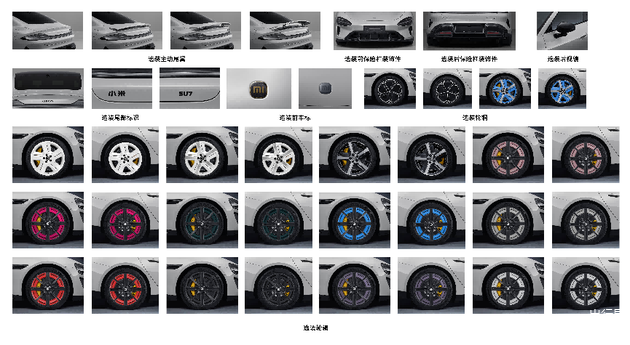 此前官方未提及的尺寸信息,在此次工信部信息申报中浮出水面,长宽高分别为4997mm、1963mm、1460mm,轴距为3000mm。同时,工信部信息披露,全新 小米SU7提供了丰富的轮辋选装样式。可以预见,未来SU7车型上市后,如何选择轮毂颜色会是用户比较纠结的点。
